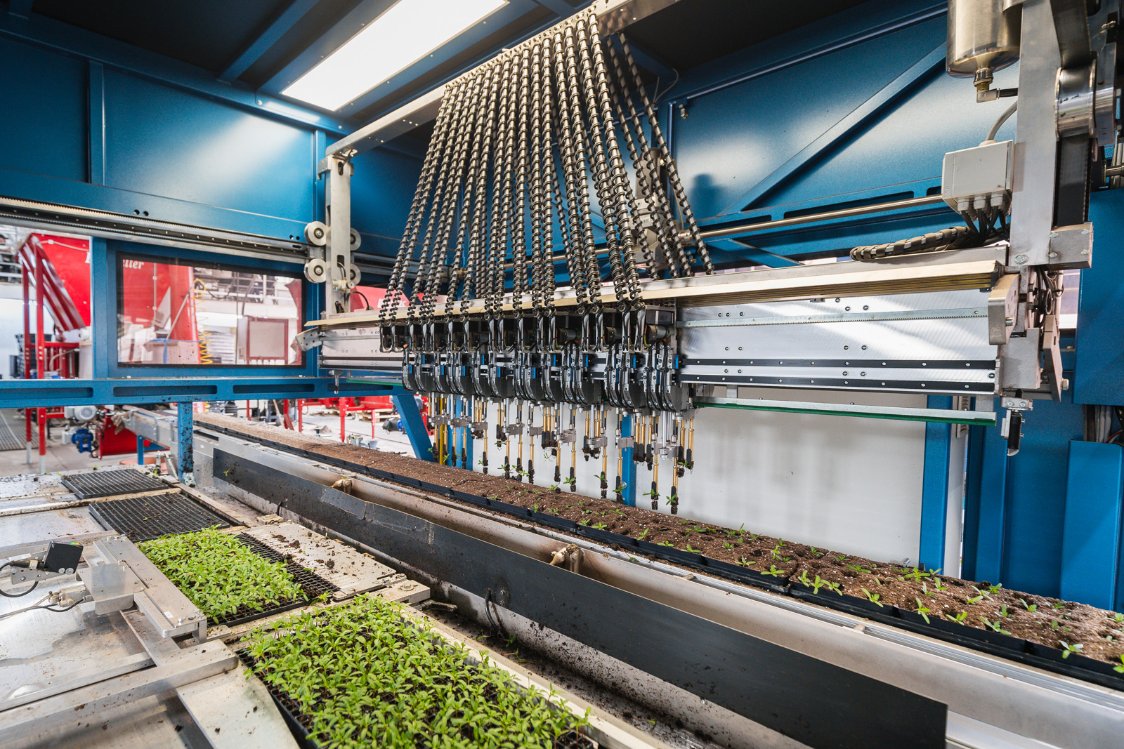 Les plantes rejetées et les bouchons vides sont collectés sur un tapis à déchets. Le plateau de destination sort au choix rempli à 100 % (aucune correction nécessaire) ou avec quelques vides pour augmenter la capacité, ce qui permet à l'opérateur de corriger le résultat. La machine et le système d'imagerie offrent une interface utilisateur facile à comprendre avec un autodiagnostic intégré.