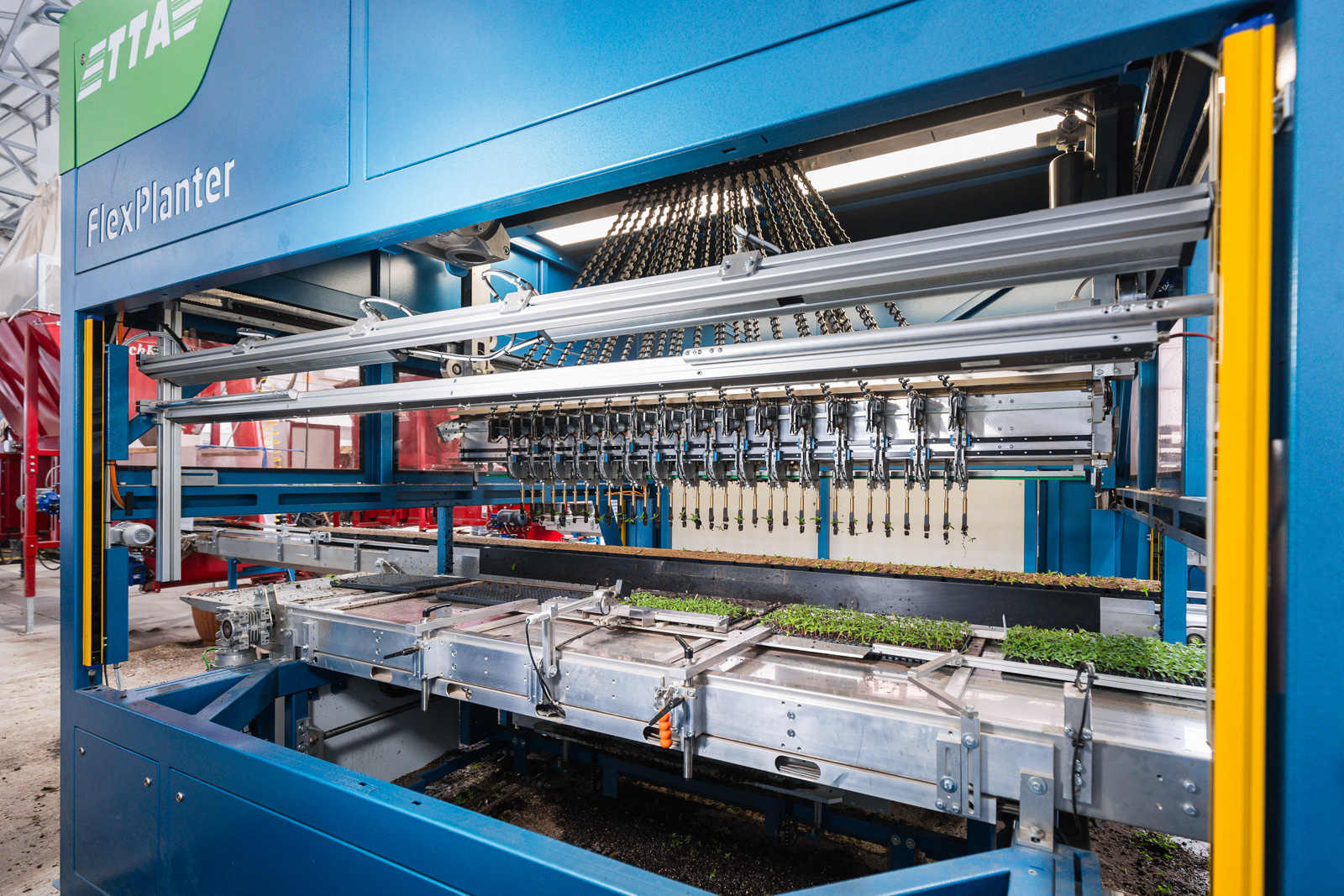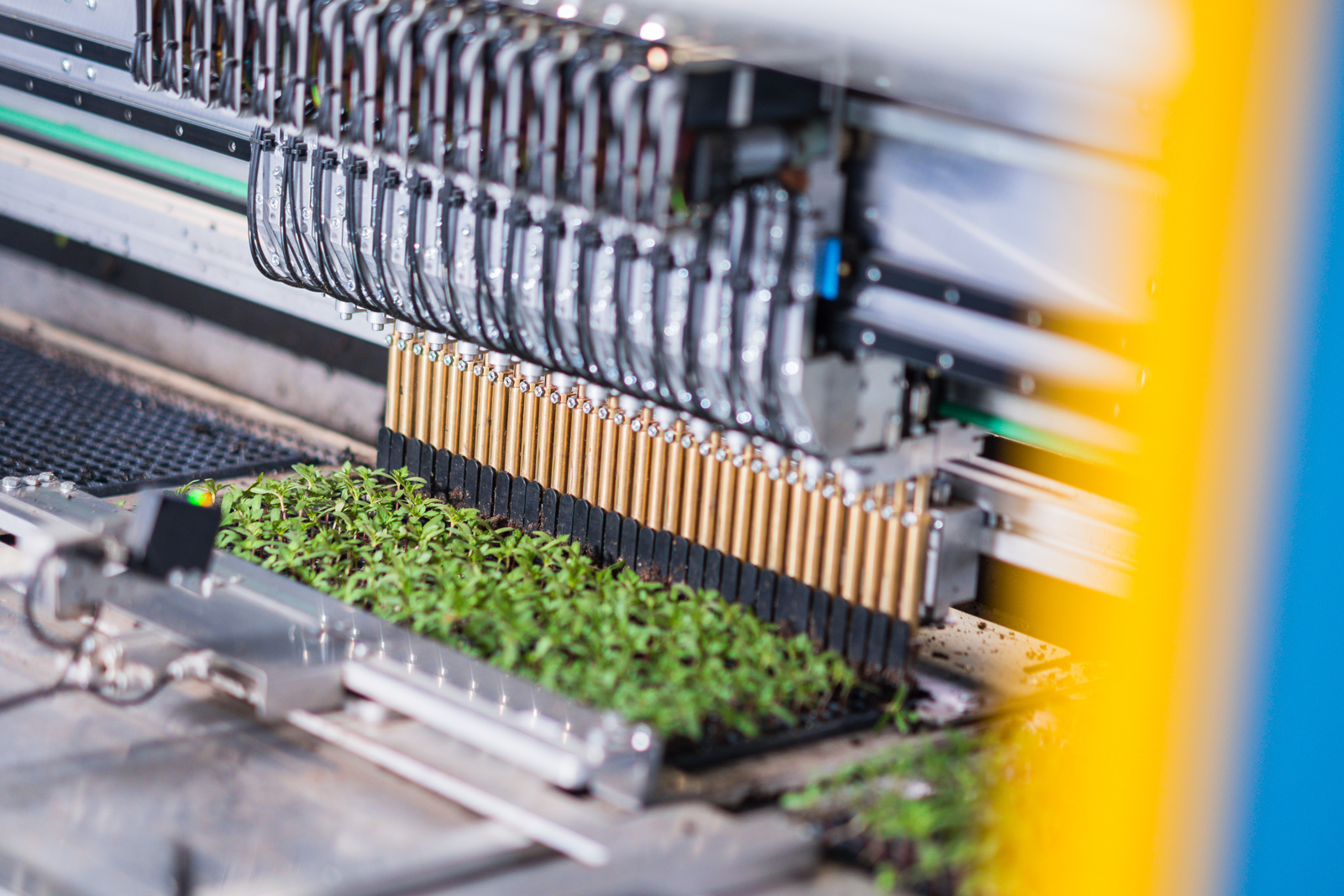 Le FlexPlanter extrait les plantes du plateau donneur à l'aide de pinces à plantes développées en interne, assistées par un système de goupilles de poussée par le bas. Les pinces donnent de l'espace aux plantes, ce qui permet de déterminer facilement leur qualité. Après sélection, le FlexPlanter n'utilise que des plantes approuvées par le système d'imagerie intégré.