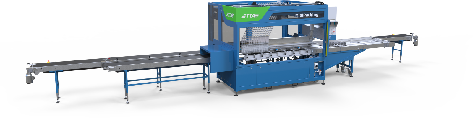 Doté d'une interface utilisateur intuitive et d'un autodiagnostic intégré, le MidiPacking garantit un fonctionnement convivial. Elle intègre en toute transparence la polyvalence reconnue de TTA-ISO, ce qui en fait une solution complète pour les besoins d'emballage des usines.